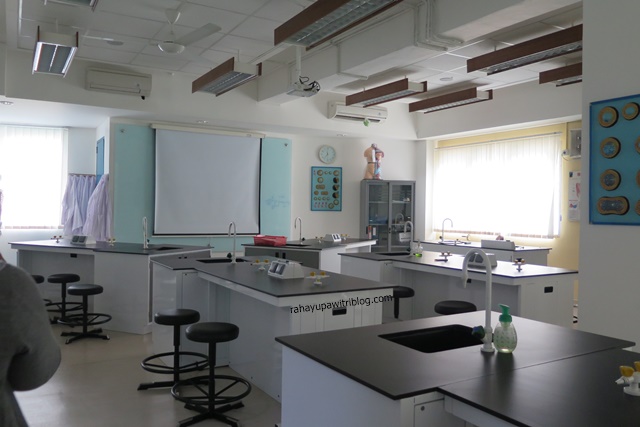 Saat tur sekolah kami dibagi dalam dua kelompok. Saya masuk kedua, dan kami memulai tur dari fasilitas laboratorium science yang digunakan oleh tingkat Junior College. Di depan laboratorium, tersedia beberapa kursi yang bisa digunakan para siswa untuk berdiskusi mengenai pelajaran atau proyek yang sedang mereka kerjakan.