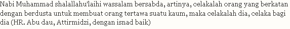 Bagi saya, komedi yang baik, seharusnya tetaplah tidak mengandung unsur sarkastik apalagi pornografi. Entah karena sense humor say yang terlalu konvensional atau karena alasan lain. Namun, ada satu hal pasti yang saya selalu ingat, bahwa Rasul sendiri, melarang kita bercanda yang berlebihan. Sabda Nabi