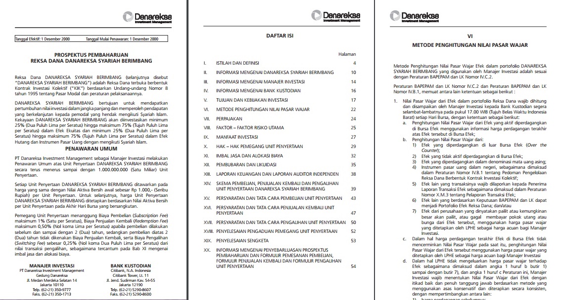 | Contoh prospektus Reksa Dana Syariah Berimbang (sumber: reksadana.danareksaonline) |